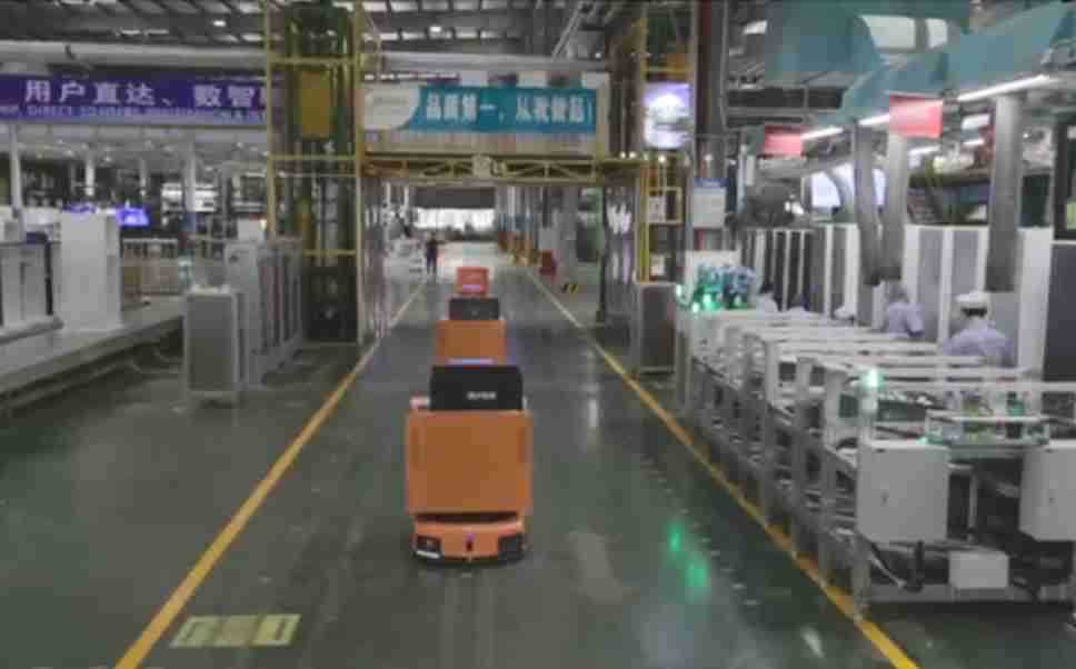为车载冰箱物流配送打造的智能解决方案,,,包含产中物流通过潜伏举升AMR搬运至线边,,产后成品物流智能仓储,,流程包含产中物流智能齐套入库,,线边安灯叫料AMR智能配送至线边,,,成品入库、、、出库,,,通过无人堆高车机器人,,,,智能仓储管理替代人工作业管理,,,实现更高存储、、更高效率、、更具柔性化的解决方案。。